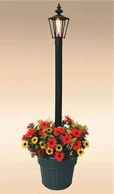 ISLANDER citronella oil flame lanterns are made of weather resistant materials, powder coated aluminum, U.V. protected polyethylene and stainless steel fasteners to protect against rust and salt air corrosion. Choose from two styles, "patio lantern" or "planter lantern." Each is 80" high and available in single lantern top or park lantern chandelier top with three 7" lanterns and one 9" lantern. *Available in texture black with Iron Planter.