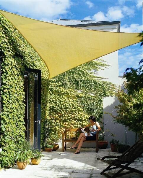 Coolaroo® Shade Sails are ideal for gardens, entryways, children's play area, patios and pools. Constructed of Coolaroo's famous polyethylene-weave fabric, it blocks 90% of the sun's dangerous UV rays while "breathing" to allow air to circulate and keep the environment underneath much cooler. With its breathable design it will also allow water to filter through. It is color fast and won't rot, mildew or mold.