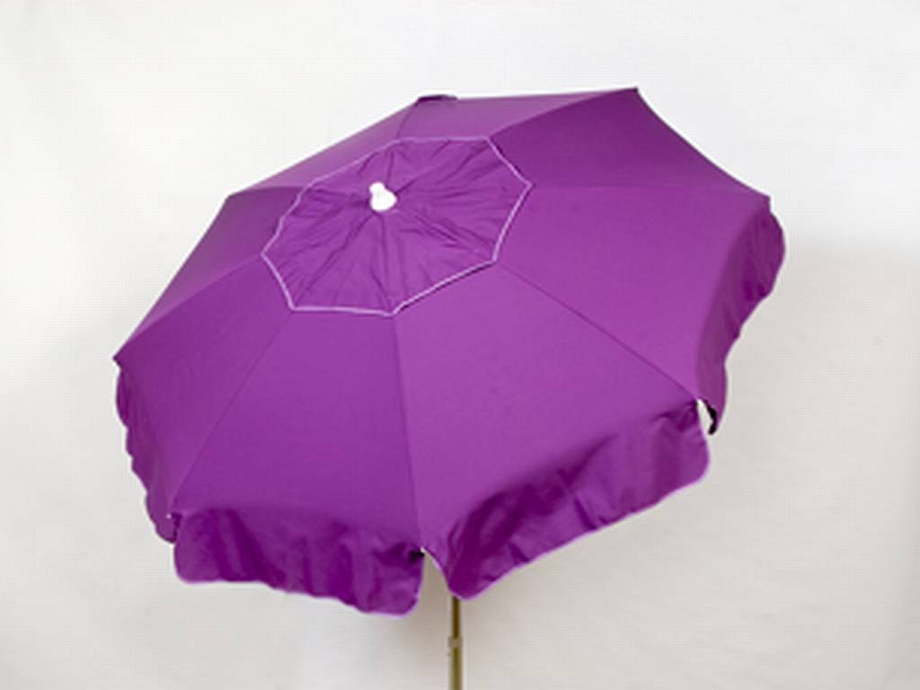 Take a break from the water and enjoy our 6ft Patio & Beach Umbrella-Solid Purple. This umbrella is 91 1/8 inches tall and comes with a two-piece snap together heavy duty aluminum frame with a 3-position tilt. Each umbrella is constructed with a heavy-duty solution dyed bright acrylic fabric. It also features a wind vent and a 7" valance.