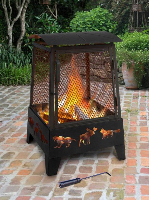 The Haywood Wildlife Fire Pit by Landmann is the perfect addition to your outdoor patio. This beautiful fire pit povides you a full 360-degree view of your fire. It is made of sturdy steel and features decorative cutouts which create a nice atmosphere. The large hinged front door provides easy access to the fire or for adding logs while the large spark screen keeps the embers contained. It comes with a poker and built-in wood grate. It comes in stylish Matte Black color and is lightweight and be easily transported to any gathering.